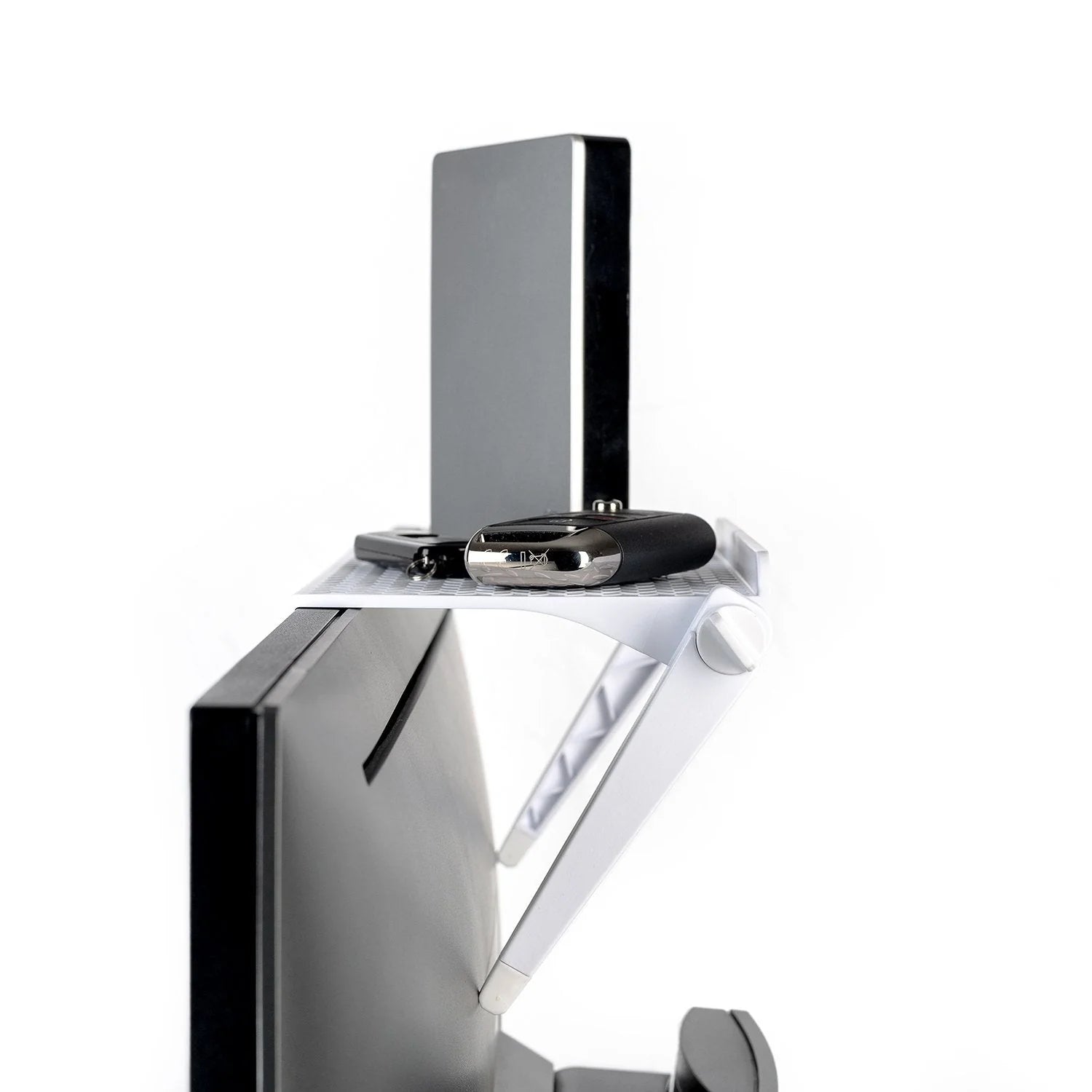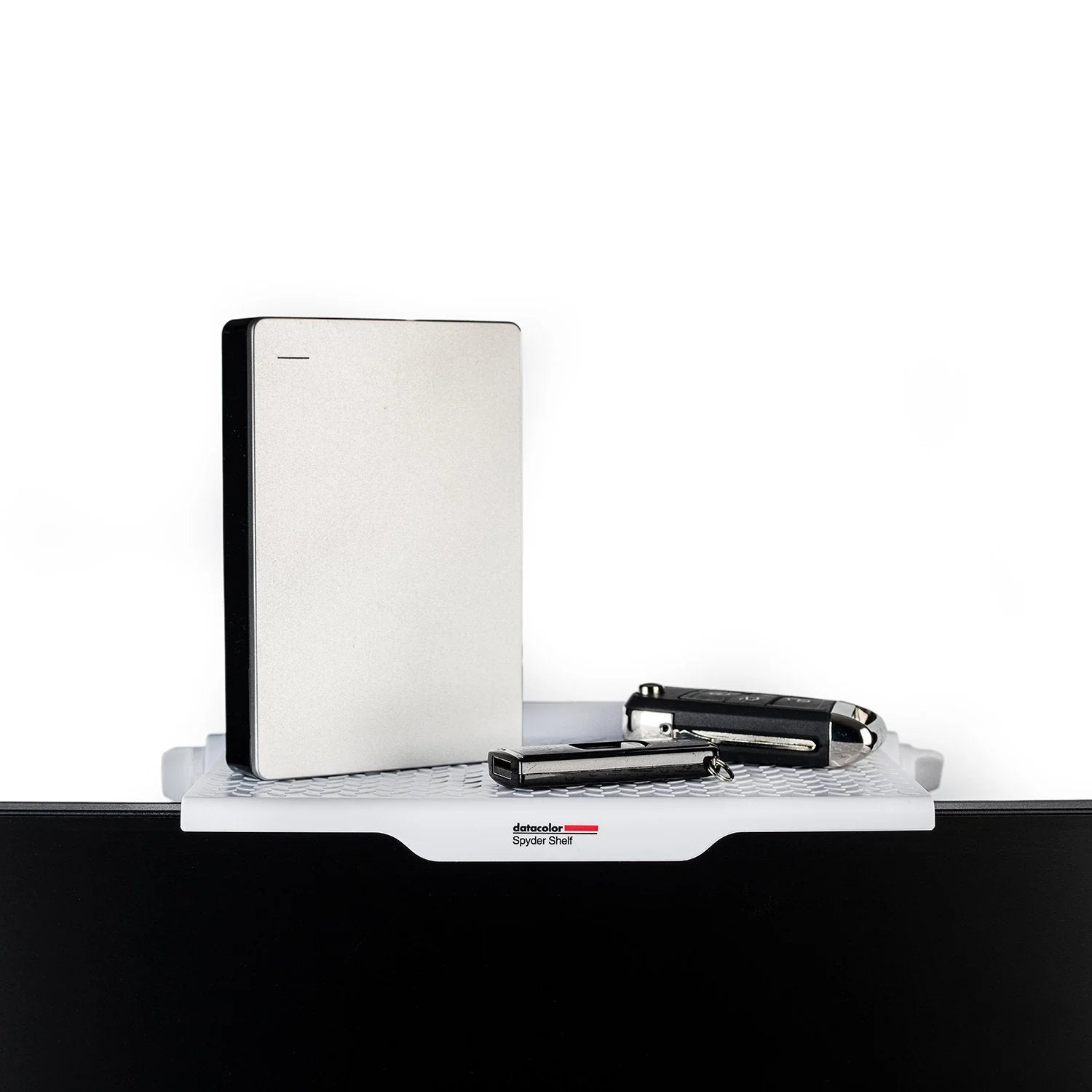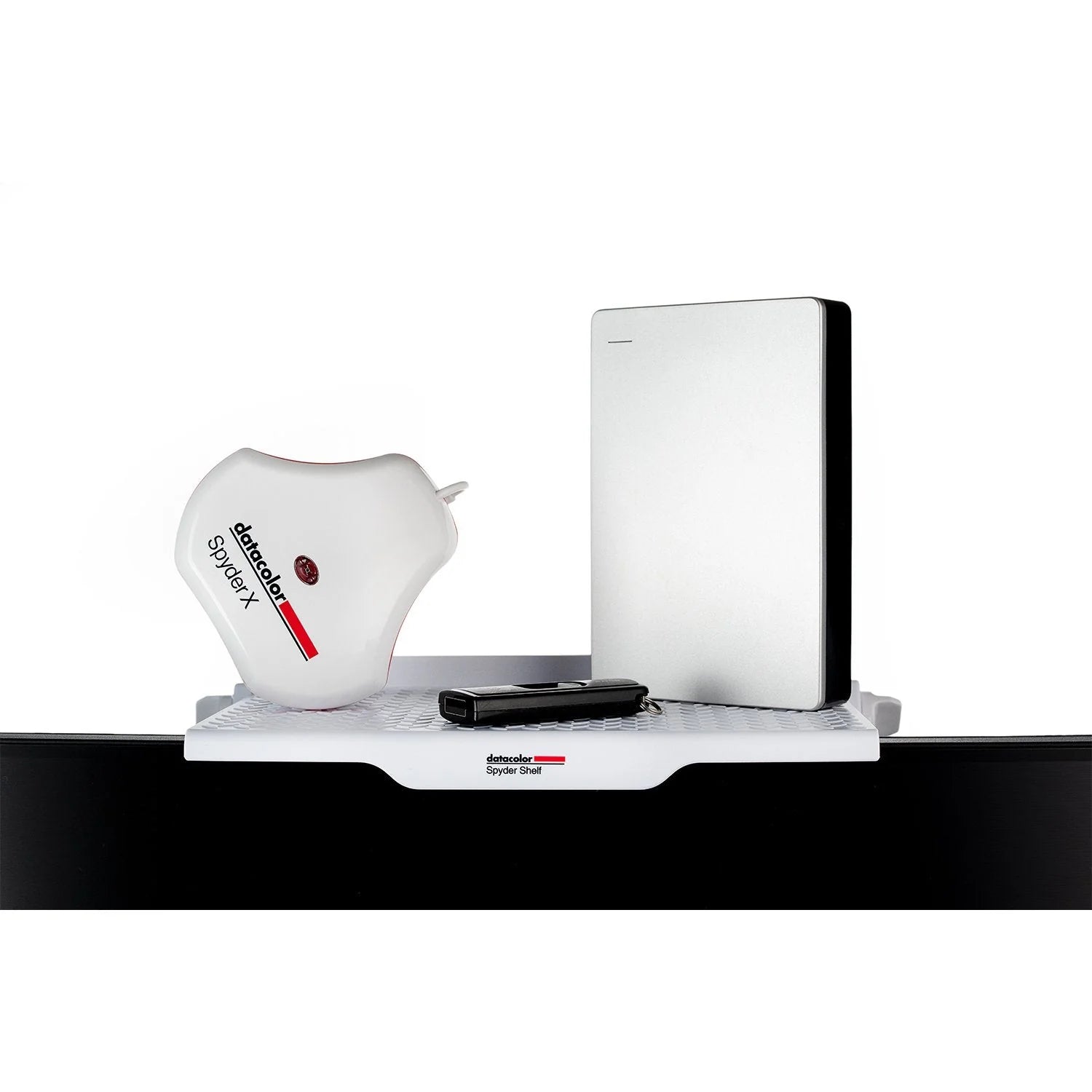 利便性を高めるために、SpyderX モニターキャリブレーターを固定するように設計された、露出したネジ山があります。注意: Spyder Shelf の最大耐荷重は 4kg です。